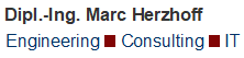 Seit über 10 Jahren bietet Dipl.-Ing. Marc Herzhoff Konzeption und Realisierung von innovativen IT-Lösungen an, vorwiegend im industriellen Technologie-Umfeld bei namhaften und weltweit tätigen Kunden.